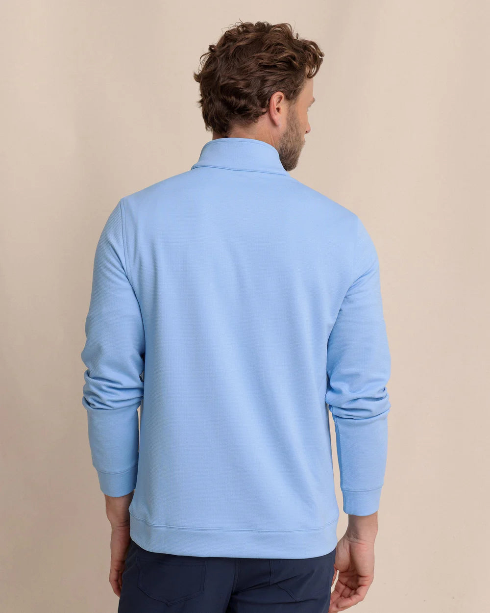 Stay warm and stylish with the Southern Tide Men's Schooner Quarter Zip. This premium stretch-enhanced quarter-zip features set-in sleeves and a two-piece collar for a polished look. The elastic back neck tape provides flexibility, making it perfect for any occasion - from work meetings to a round of golf.