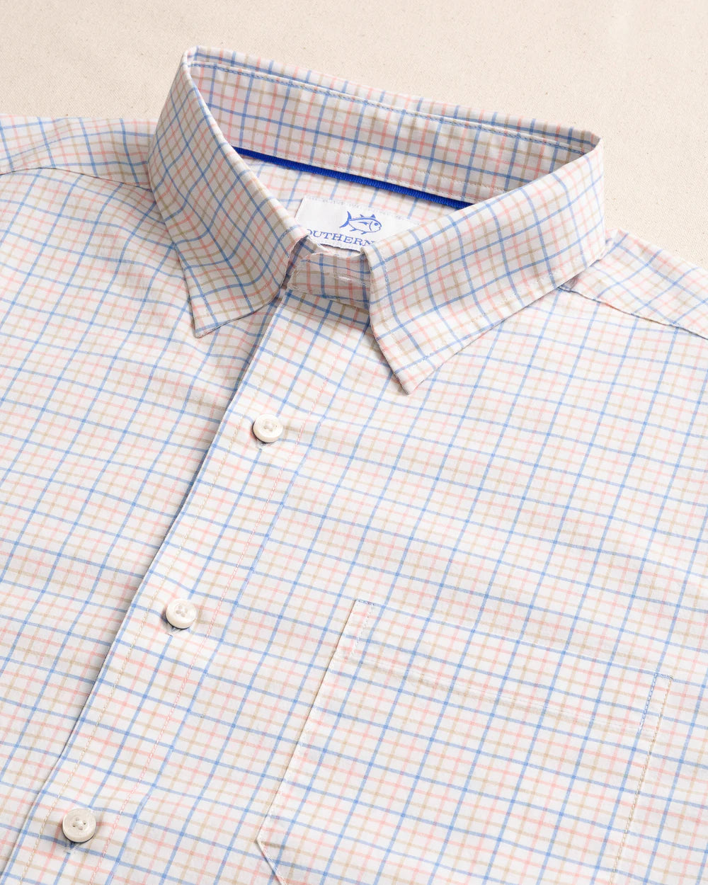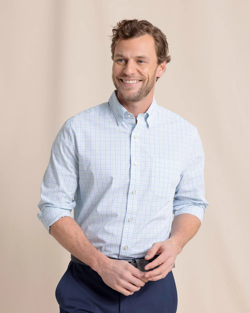 Add some classic charm and modern comfort to your wardrobe with the Southern Tide Men's Broughton Plaid Sport Shirt. Whether for a casual or formal occasion, this button down shirt features a vibrant plaid pattern and a hidden button down collar to keep you looking sharp.