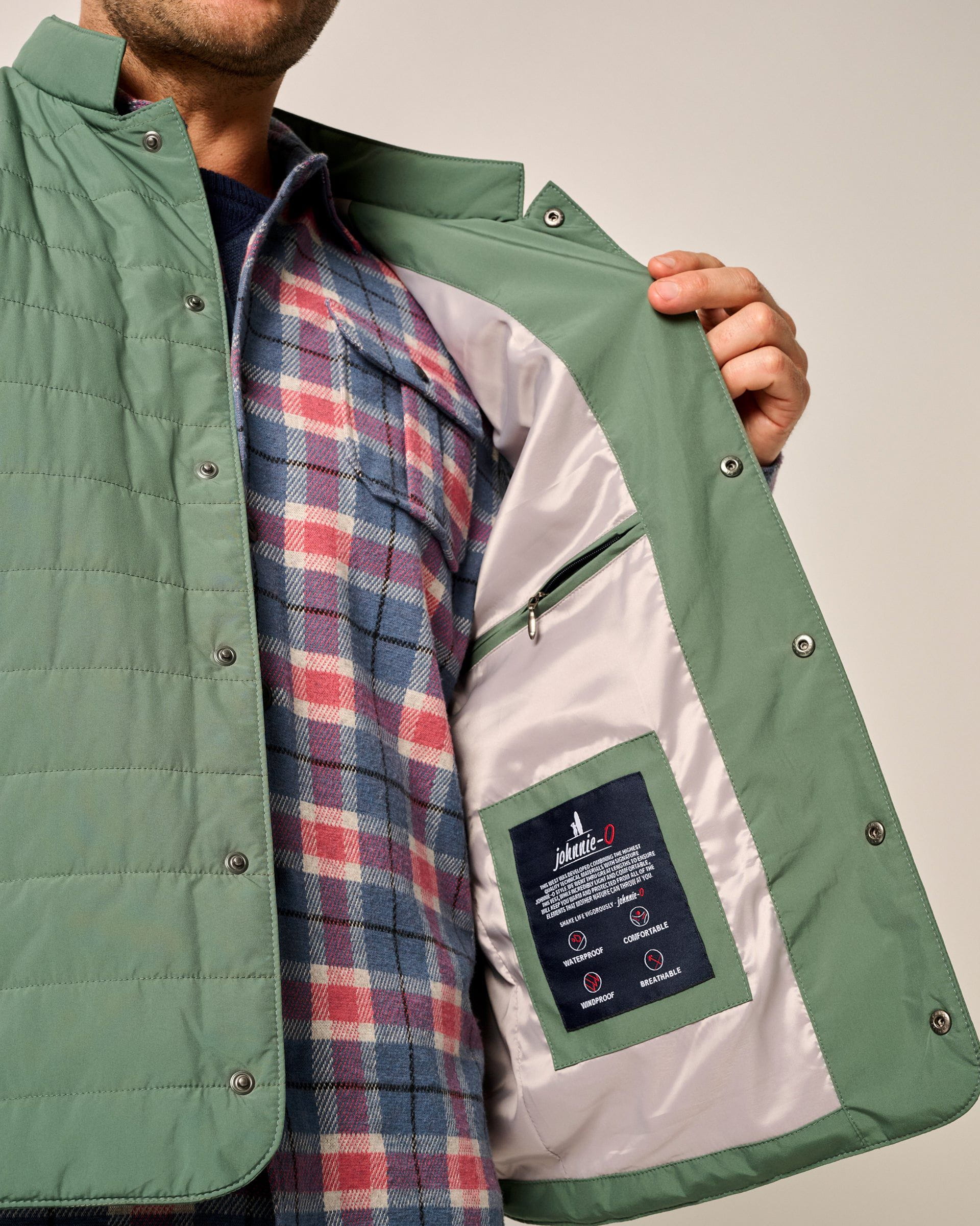 Introducing the Johnnie-O Apo Quilted Button Up Vest, the perfect blend of style and functionality. Made with high quality polyester microfibre, this warm vest is designed to keep you looking sharp while staying cozy. The unique details, including snap buttons, magnetic pockets, and contrast interior paneling, make this a versatile piece for years to come!