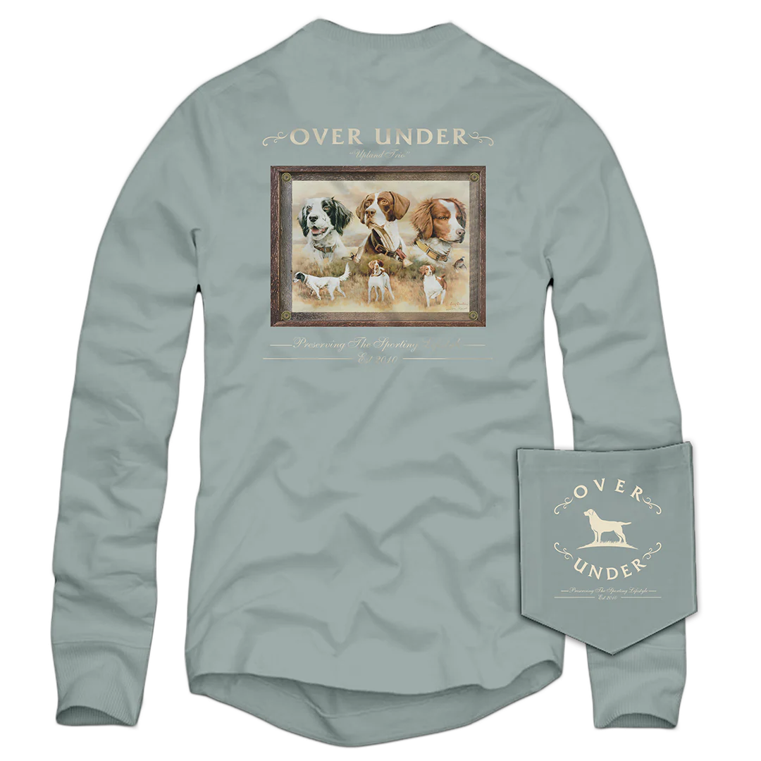 Unleash your love for the great outdoors with our Over Under Upland Trio LS T Shirt. Designed with timeless graphics and a soft fit, this tee celebrates the sporting lifestyle and your furry companions. Crafted for any adventure, with water-based ink for a clean, comfortable touch. Get ready to roam!