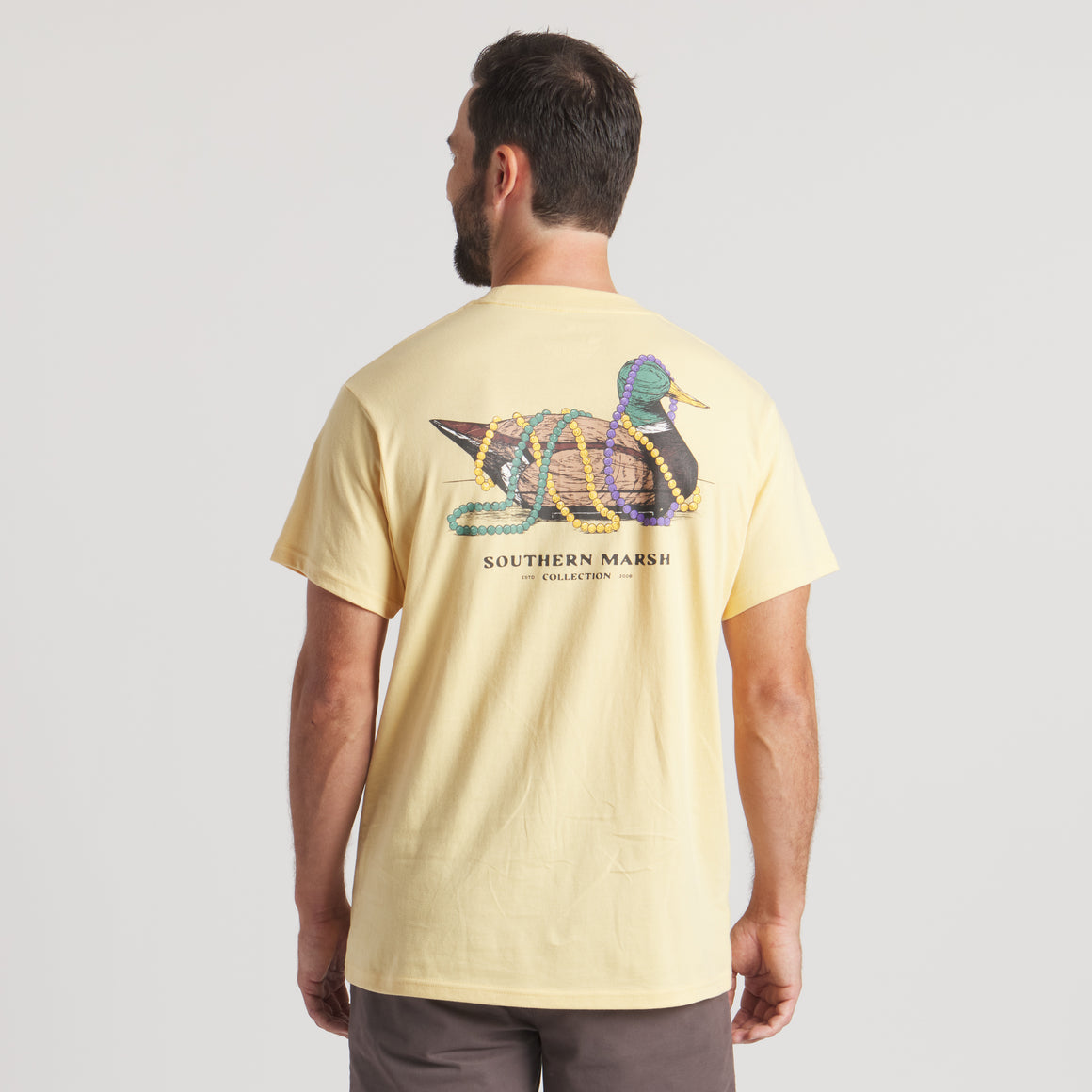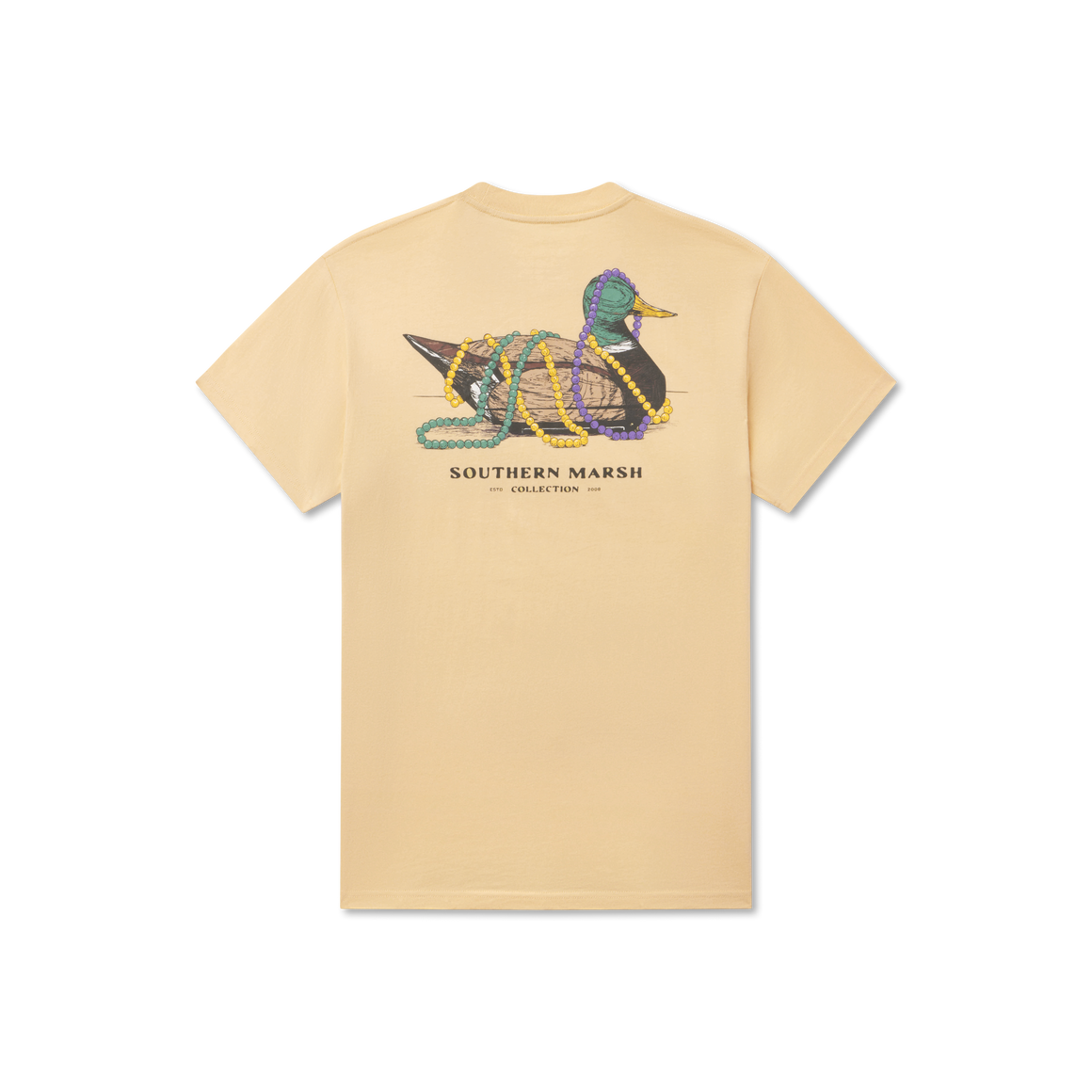 Celebrate New Orleans style in this playful tee that captures the magic of Mardi Gras season. Our Vintage Duck Decoy design features a classic wooden mallard adorned with vibrant beads—a charming nod to the Vieux Carré's rich traditions and sporting heritage. Crafted from soft, breathable 100% cotton, it's the perfect lightweight layer for parades, parties, and everything in between. Whether you're a local or just catching the spirit, this vintage-inspired piece brings authentic Louisiana charm to your wardrobe.