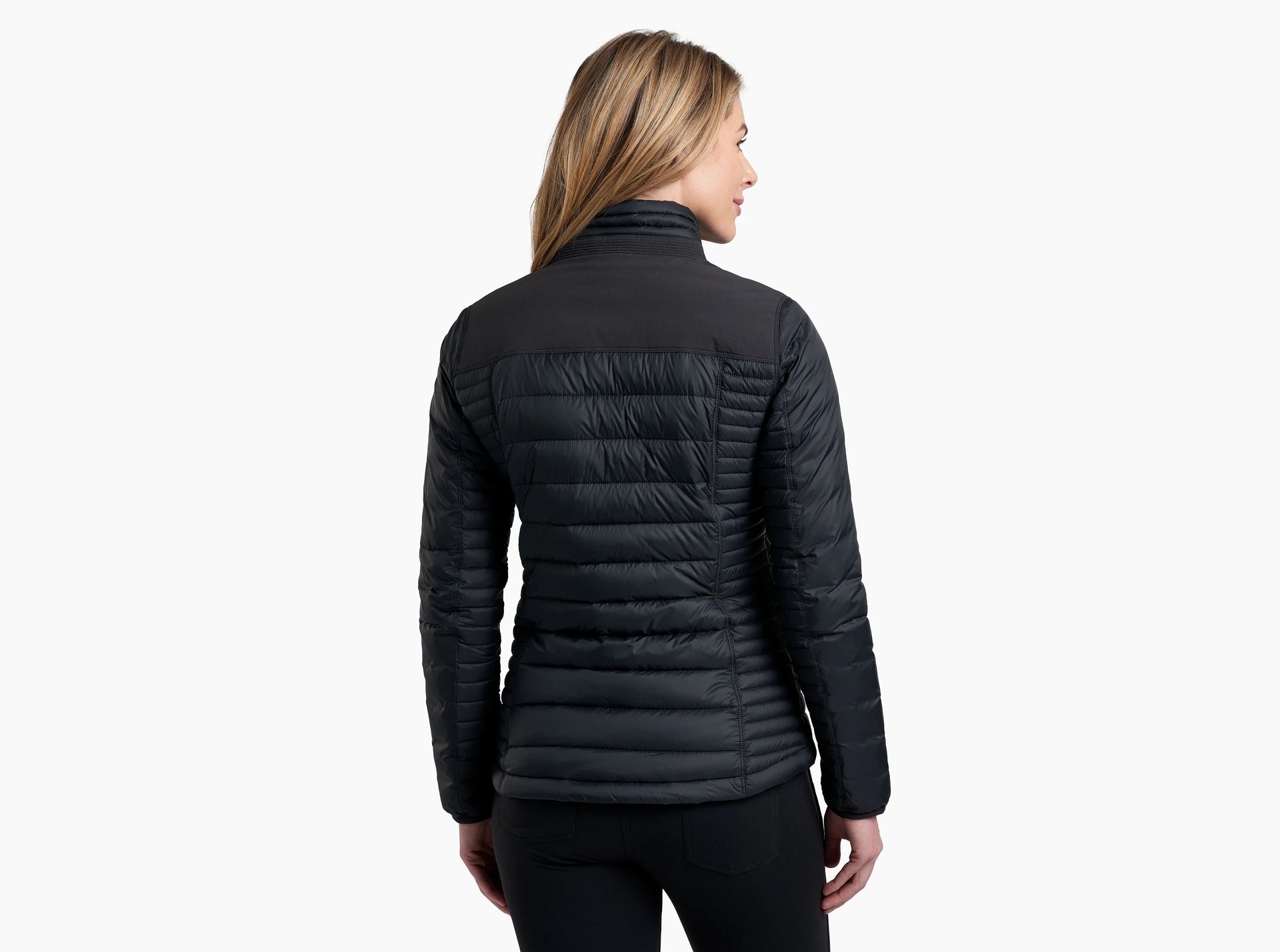 Get the best of both worlds with the Kuhl Women's Spyfire Jacket. With more down insulation at your core and temperature-regulating underarm gussets, stay warm and comfortable during high-intensity activities. Reinforced overlays and 3D patterning offer a durable and perfect fit. No other jacket can match this one!
