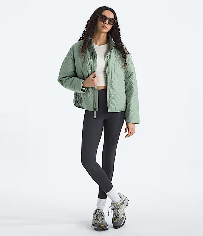 The North Face Women's Diamond Peak Insulated Jacket blends bold diamond quilting with an oversized fit for a fresh, fun look. Crafted from wind-resistant WINDWALL™ fabric with water-repellent protection, it shields you from the elements. THERMOBALL™ insulation keeps you toasty even when things get damp, so you can embrace every adventure with warmth and confidence—whether on the trail or the city streets.