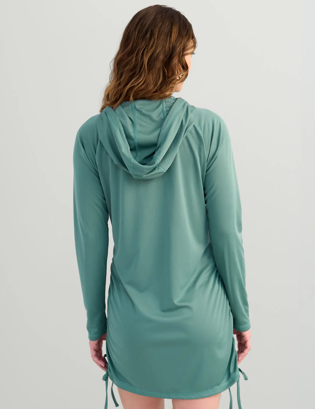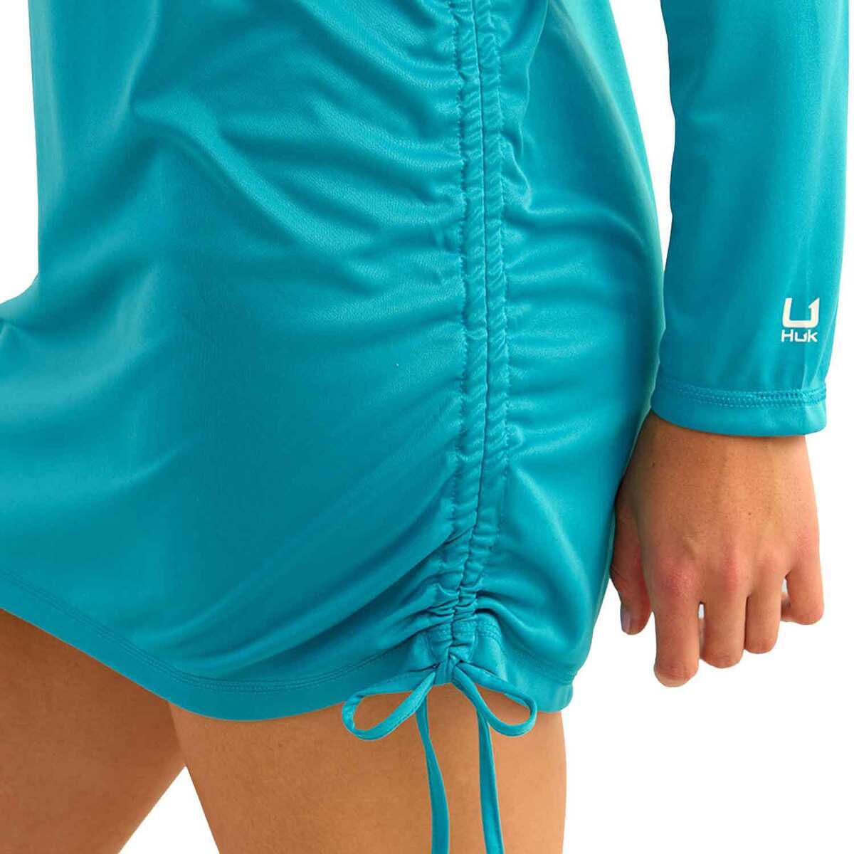 Stay stylish and protected with the Huk Women's Pursuit Cover Up Dress. Whether you're at the beach, on deck, or poolside, its lightweight fabric and hood offer optimal sun protection. With adjustable cinching at the sides and a non-cling drape, this dress is both adjustable and comfortable.