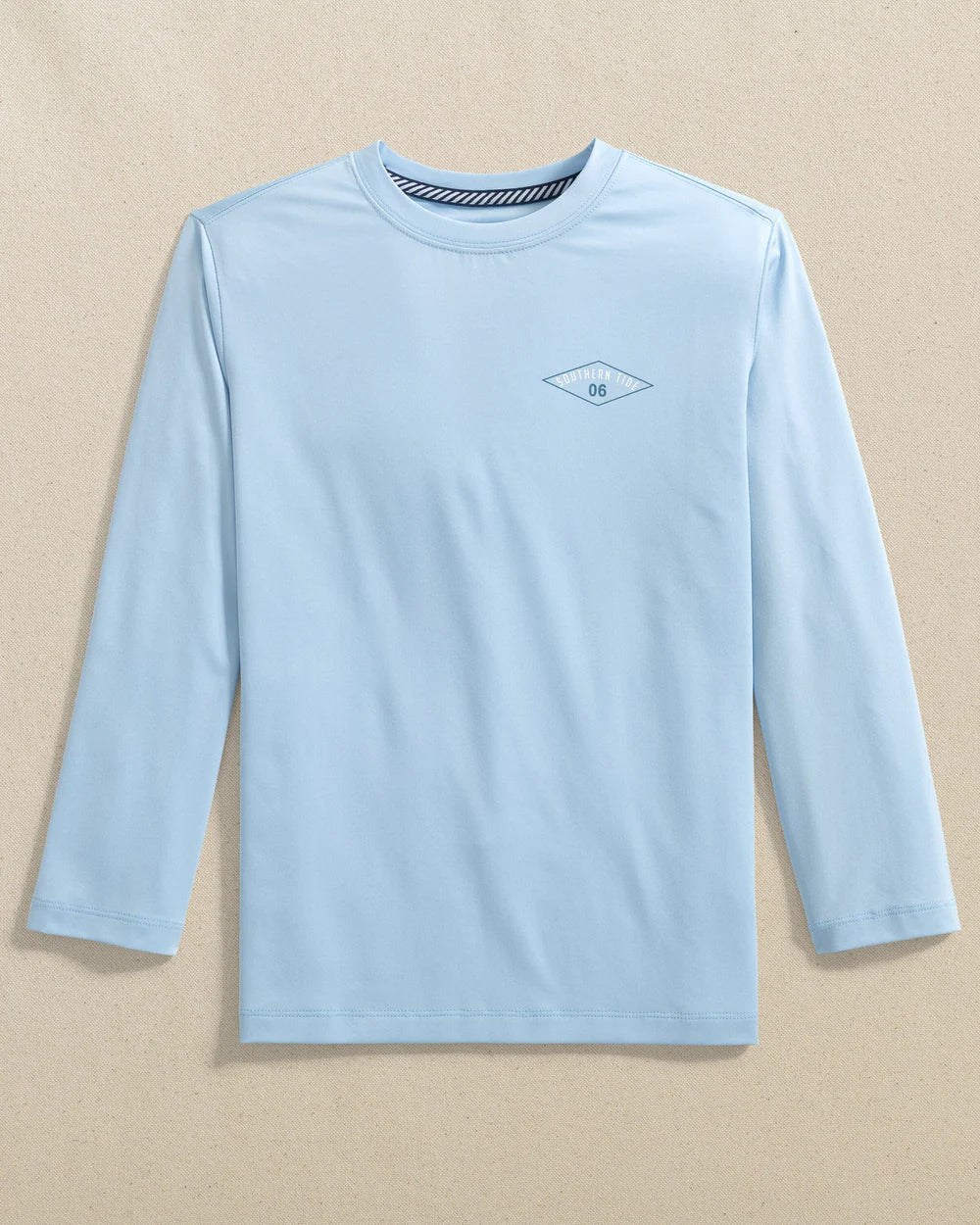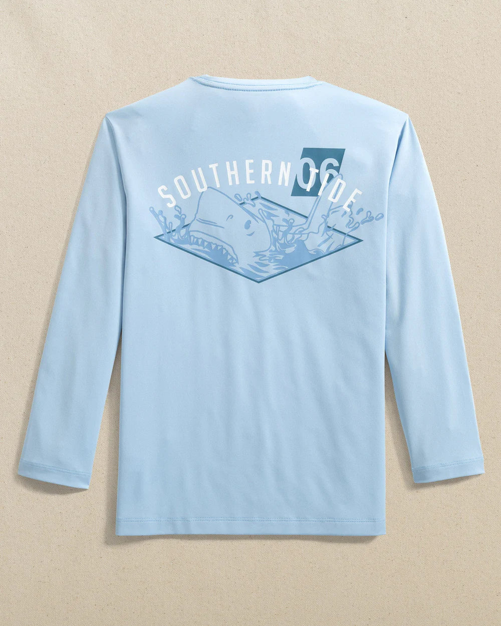 Make a splash with the Southern Tide Youth Shark Attack Performance Tee. Designed for young explorers, this tee features a skipjack logo with striking shark's teeth, perfect for showcasing their passion for the sea. With its performance fabric, they'll be comfortable and ready to conquer the waves.