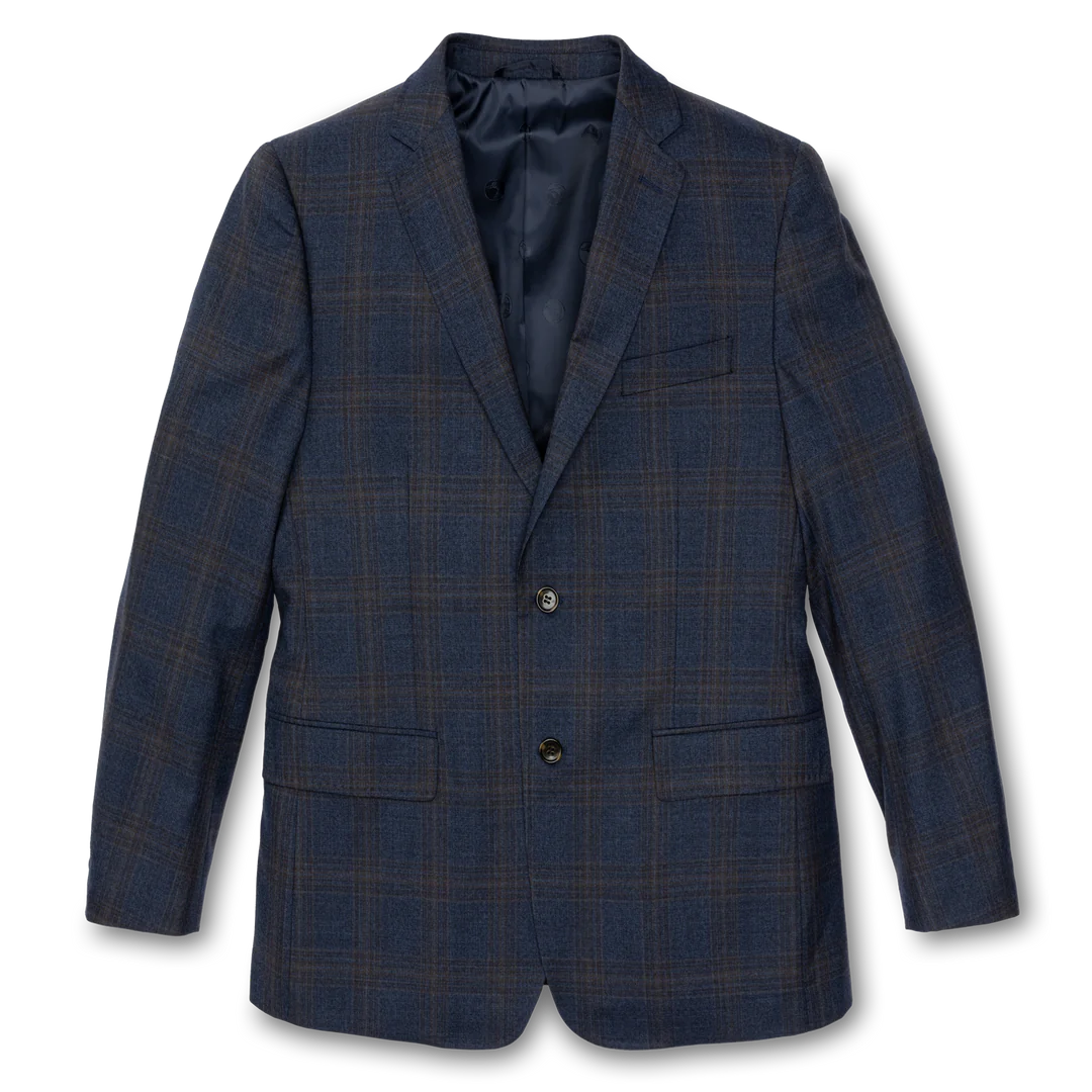 Elevate your style game with the Duck Head Brennan Plaid Sport Coat. Crafted from a luxurious blend of wool and polyester, this coat effortlessly combines fashion and practicality. Featuring a jacquard lining for added luxury, striped sleeves, and pick stitching for a sharp touch. Perfect for all your special events.