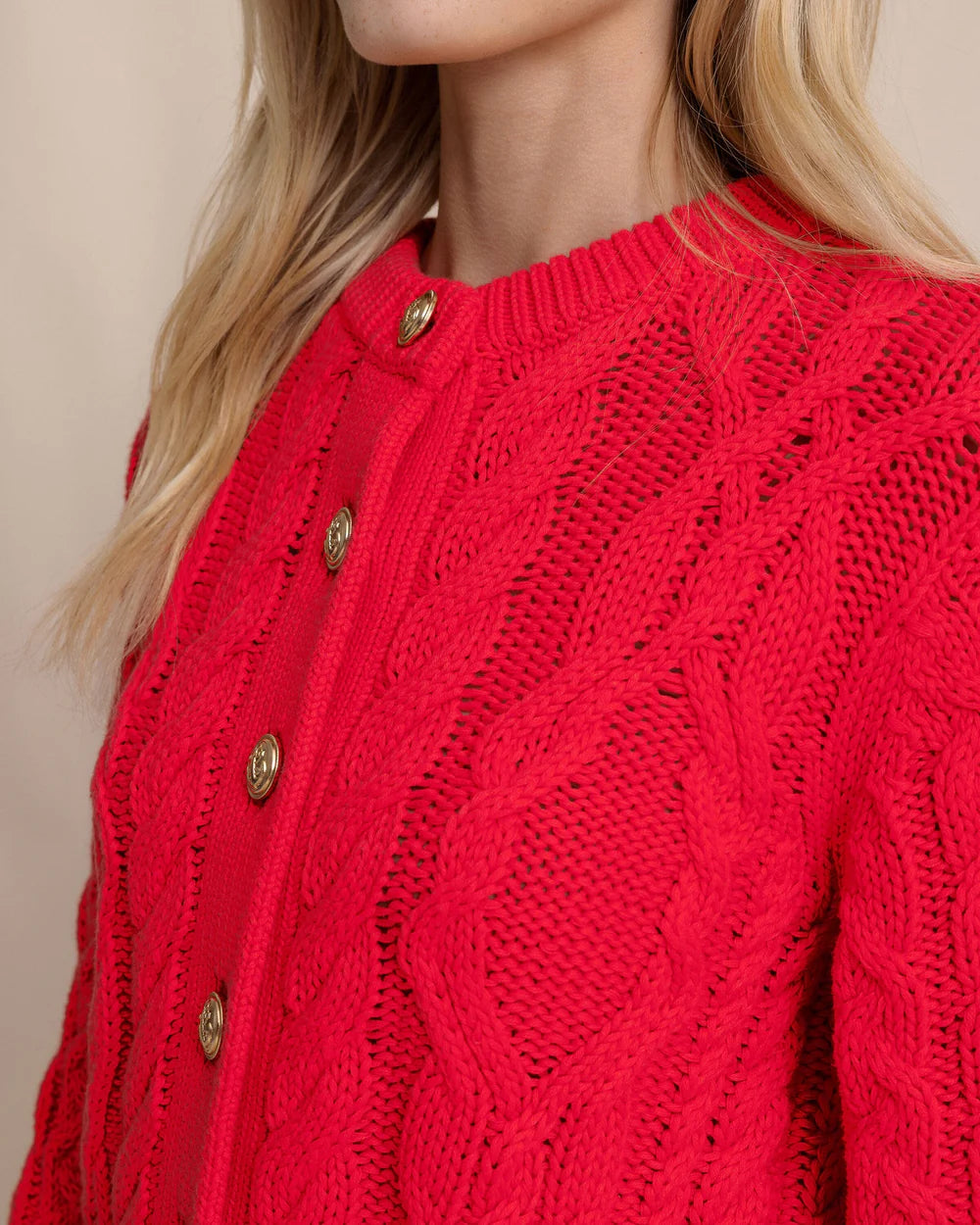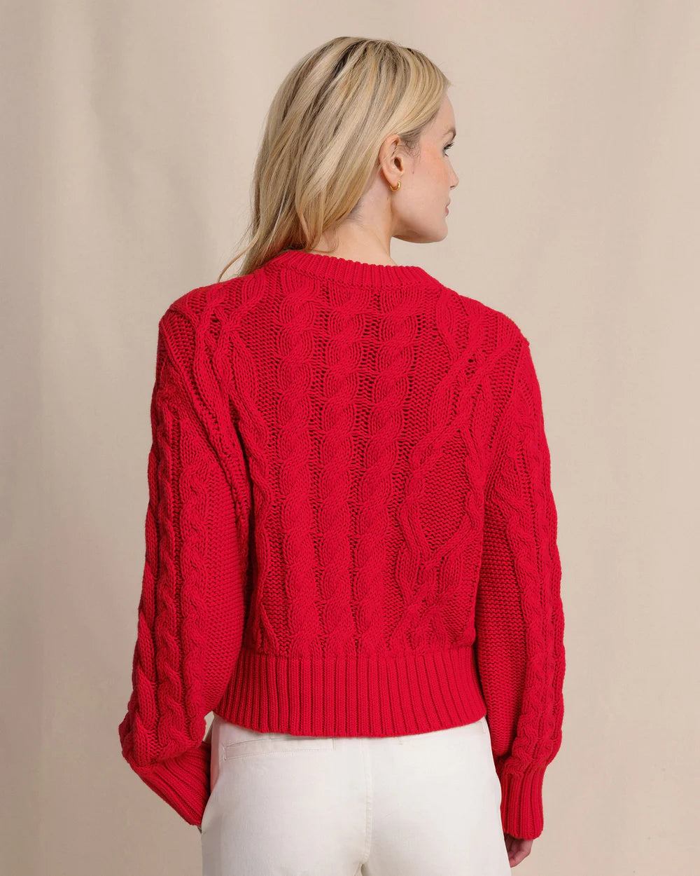 The Southern Tide Women's Clarke Cable Knit Sweater is your new go-to for cozy, stylish layering. With its chunky cable knit and ribbed accents, this cardigan adds texture and warmth to any outfit. Whether you’re heading out for a holiday brunch, taking a breezy evening stroll, or lounging at home, its relaxed fit keeps things comfy and cute all season long. Embrace chilly days with effortless charm and a playful touch!
