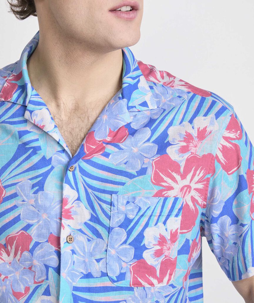 Vineyard Vines Men's Island Floral Linen Blend Short-Sleeve Cabana Shirt